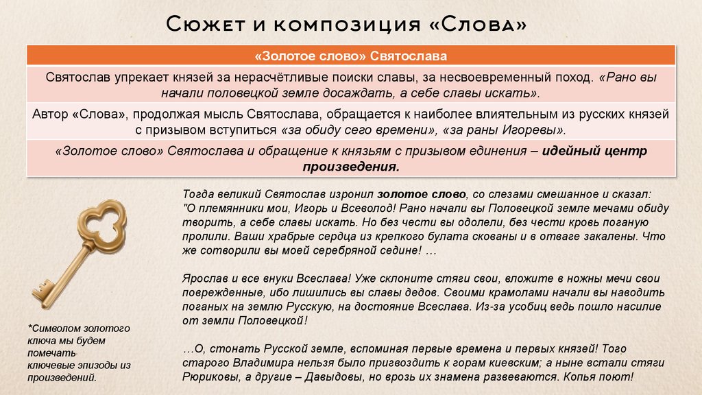 Сюжет и композиция «Слова»«Золотое слово» Святослава