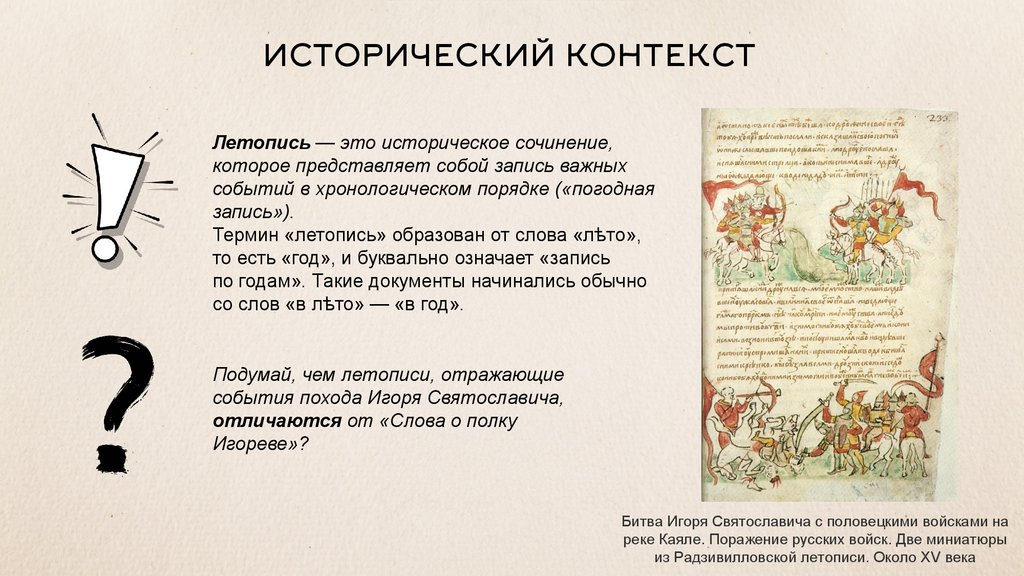 ИСТОРИЧЕСКИЙ КОНТЕКСТЛетопись — это историческое сочинение,