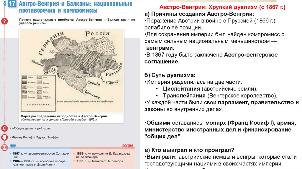 Австро-Венгрия: Хрупкий дуализм (с 1867 г.)а) Причины создания Австро-Венгрии:
