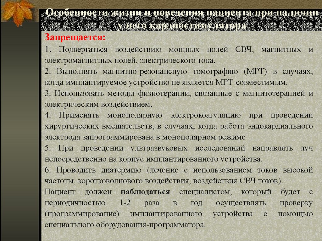Особенности жизни и поведения пациента при наличииу него кардиостимулятора