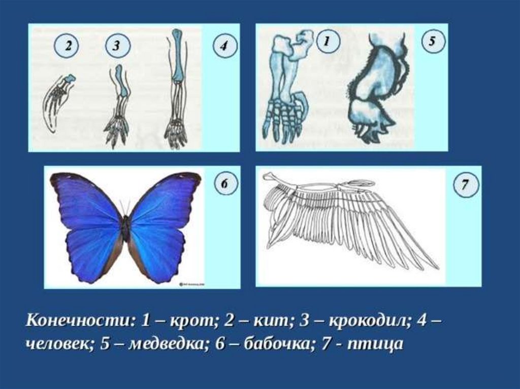 24. Рассмотрите рисунки. Определите, какие из органов являются примерами гомологии, а какие аналогии? Укажите номера: А –