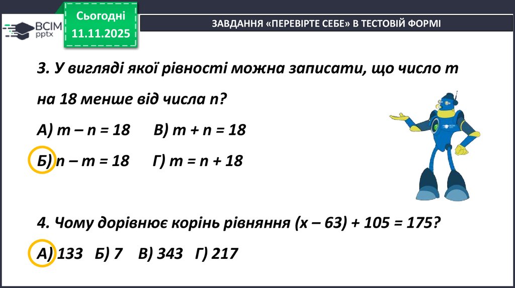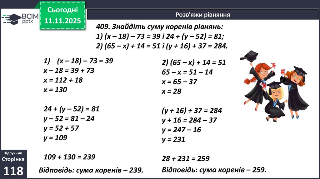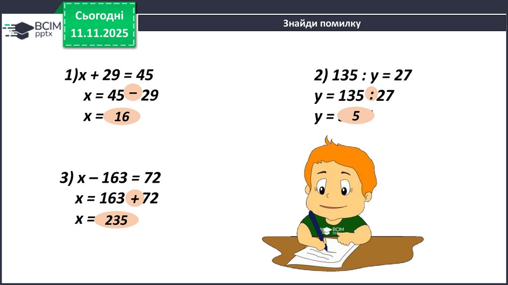 2) (65 – x) + 14 = 51 і (y + 16) + 37 = 284.
