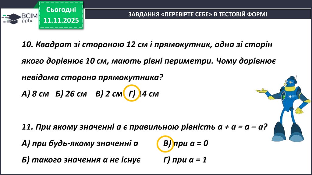11. При якому значенні a є правильною рівність a + a = a – a?