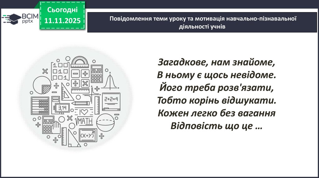 Повідомлення теми уроку та мотивація навчально-пізнавальної