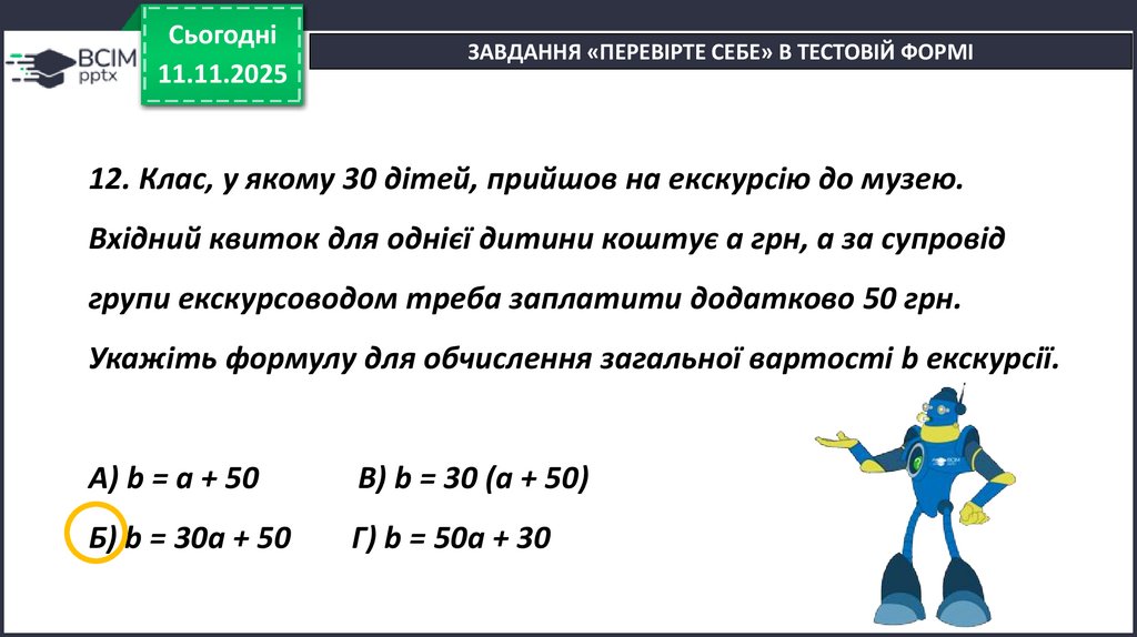 Укажіть формулу для обчислення загальної вартості b екскурсії.