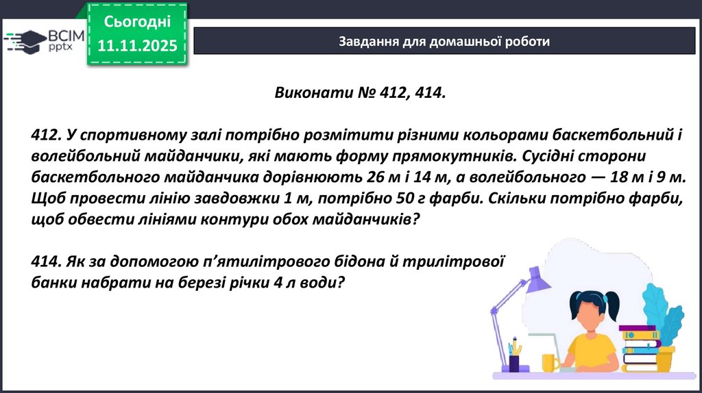 412. У спортивному залі потрібно розмітити різними кольорами баскетбольний і