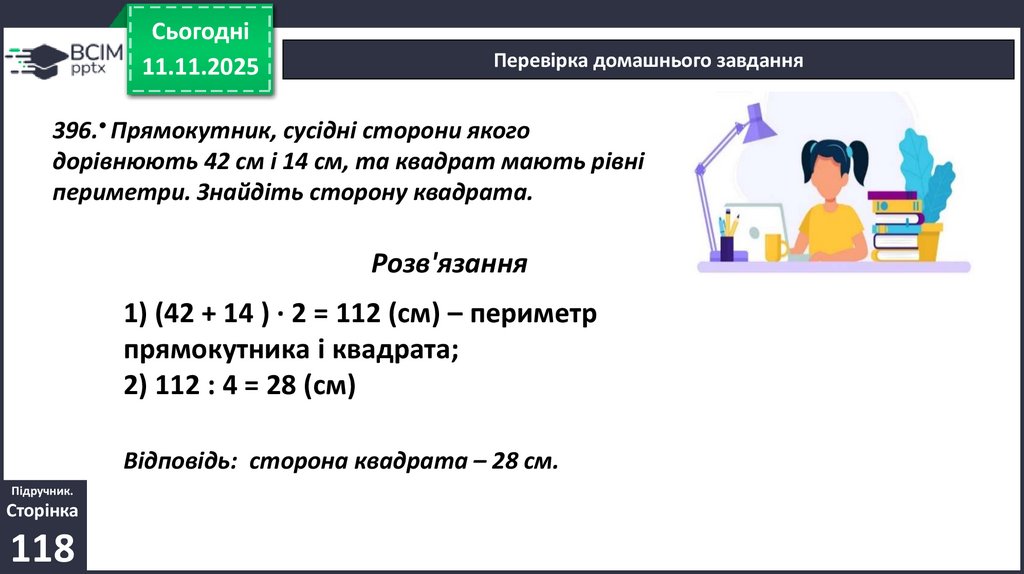 1) (42 + 14 ) · 2 = 112 (см) – периметр