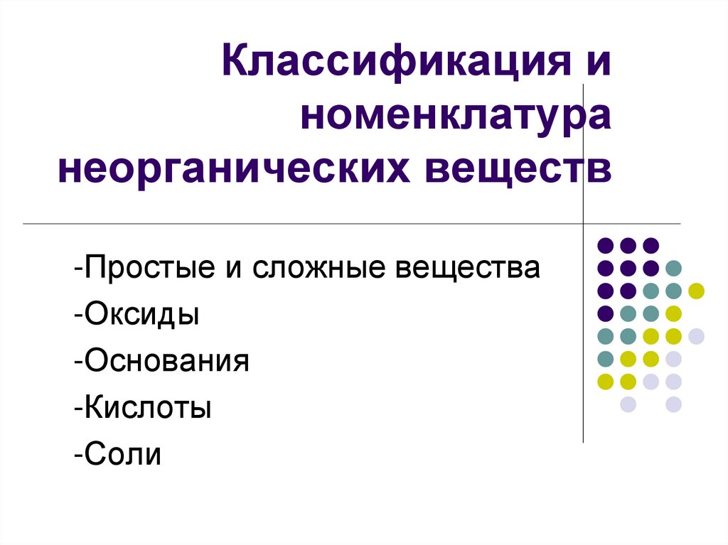6. Сложные неорганические вещества обычно делят на четыре класса:
