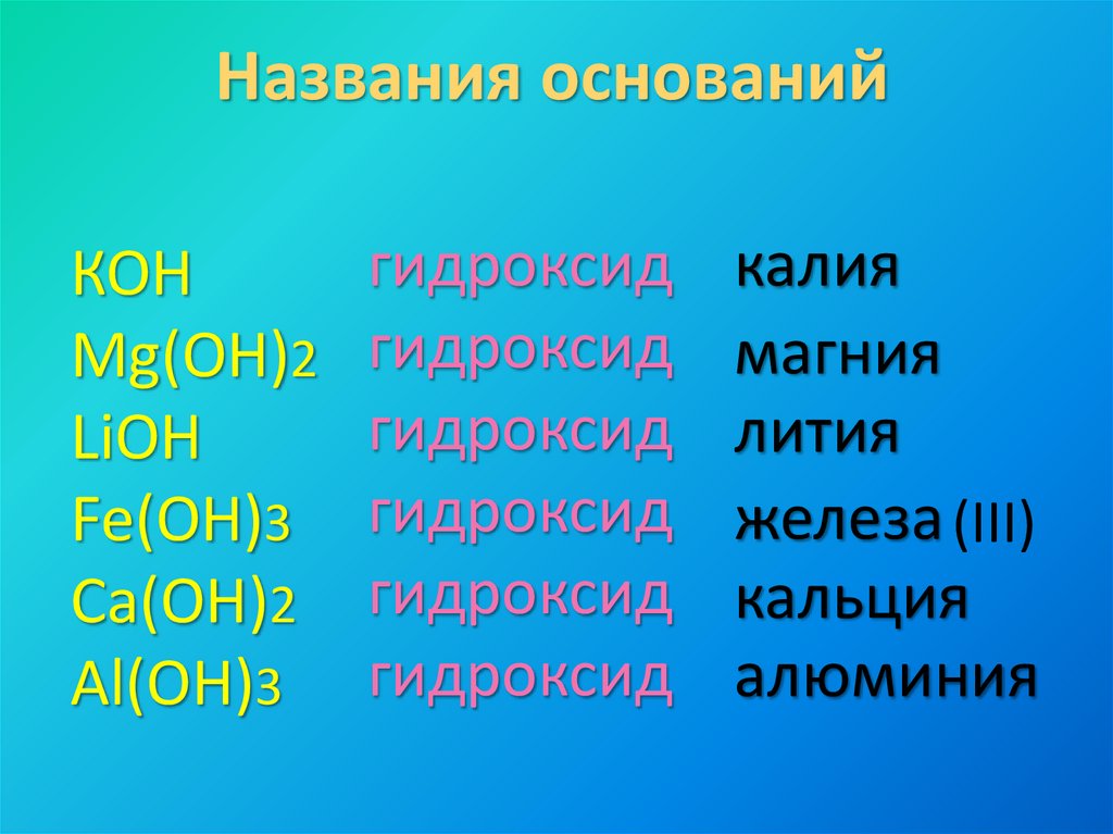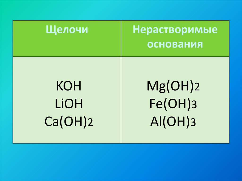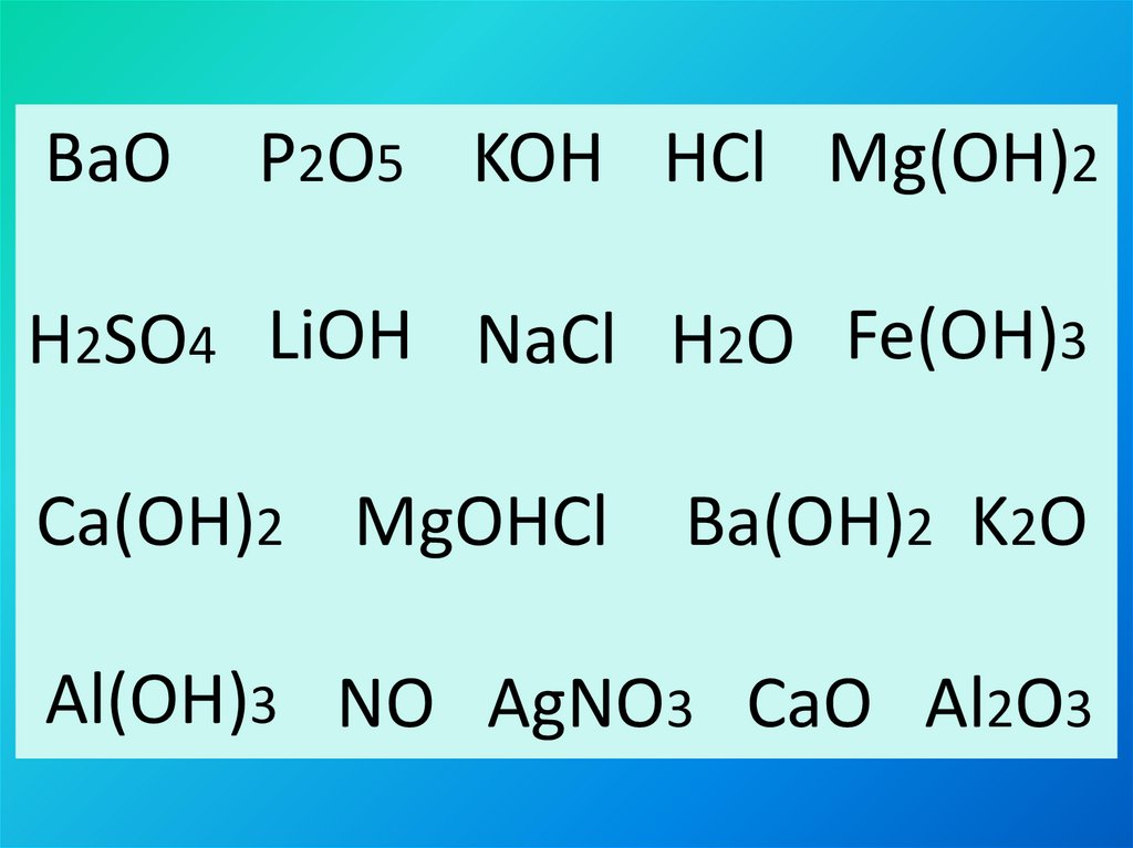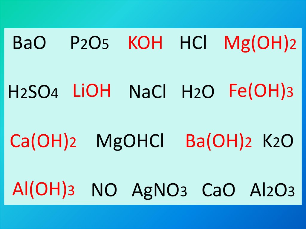 Ca(OH)2 MgOHCl Ba(OH)2 K2O