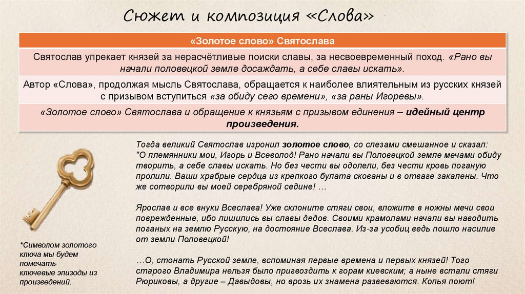 Сюжет и композиция «Слова»«Золотое слово» Святослава