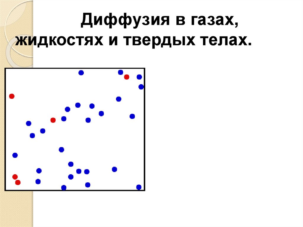Причина диффузии - беспорядочноедвижение молекул.