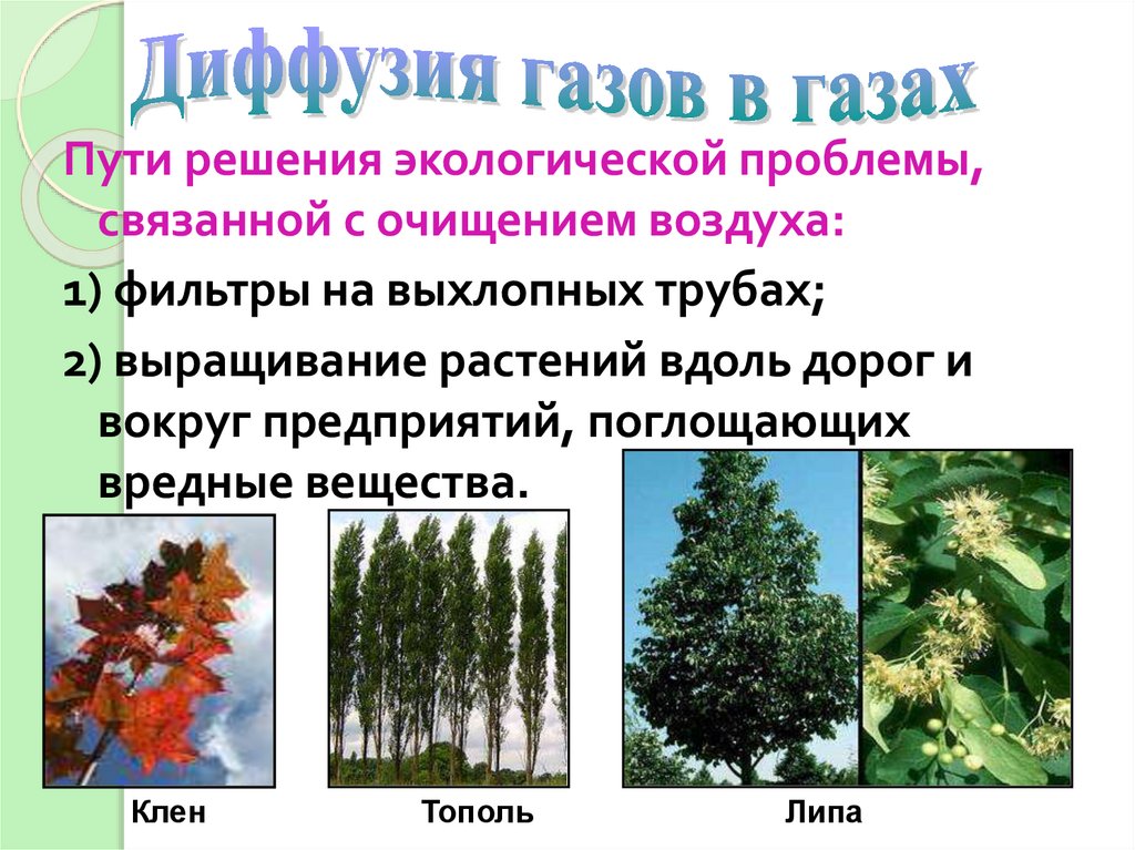 Пути решения экологической проблемы,связанной с очищением воздуха:
