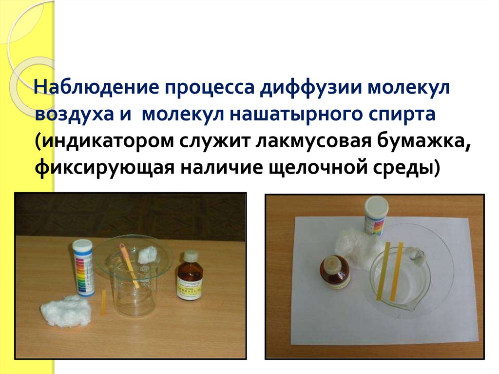 Наблюдение процесса диффузии молекулвоздуха и молекул нашатырного спирта