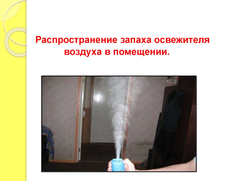 Распространение запаха освежителявоздуха в помещении.