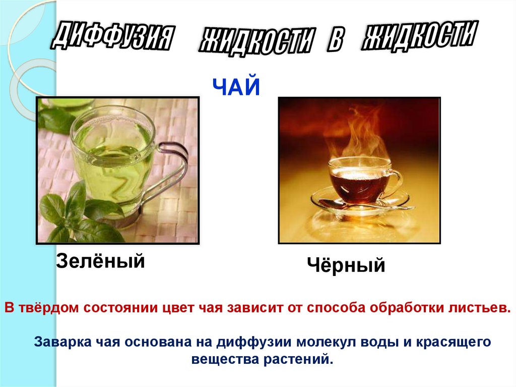 Заварка чая основана на диффузии молекул воды и красящего