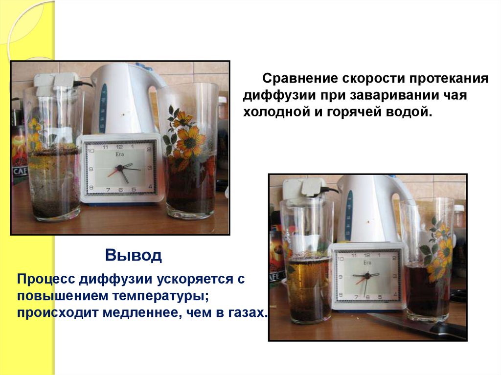 Сравнение скорости протеканиядиффузии при заваривании чая