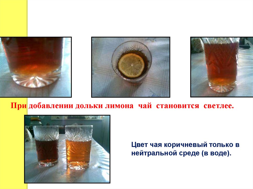 При добавлении дольки лимона чай становится светлее.Цвет чая коричневый только в