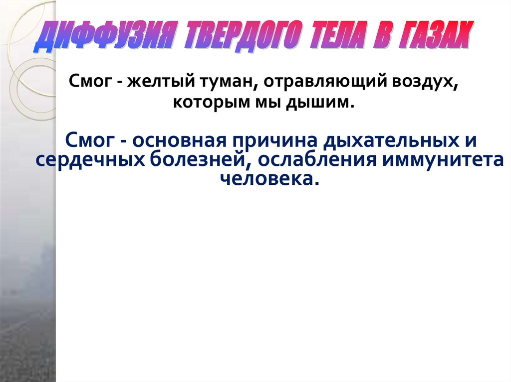 Смог - желтый туман, отравляющий воздух,которым мы дышим.