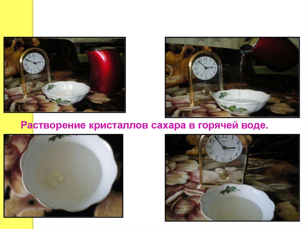 Растворение кристаллов сахара в горячей воде.27.