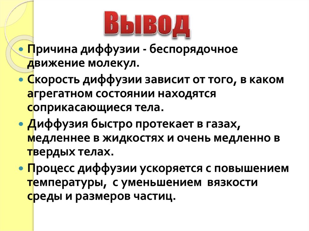 Скорость диффузии зависит от того, в каком