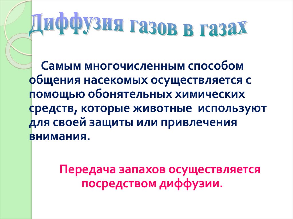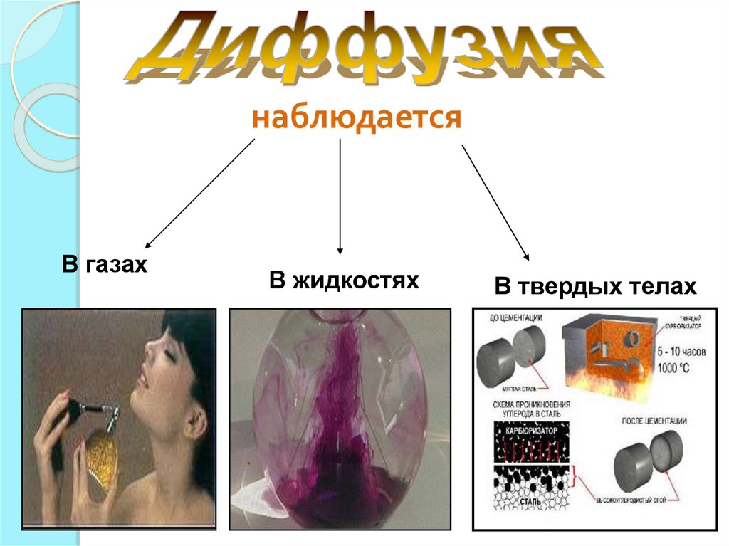 Диффузия быстро протекает в газах,