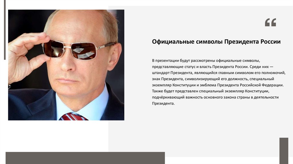 представляющие статус и власть Президента России. Среди них —
