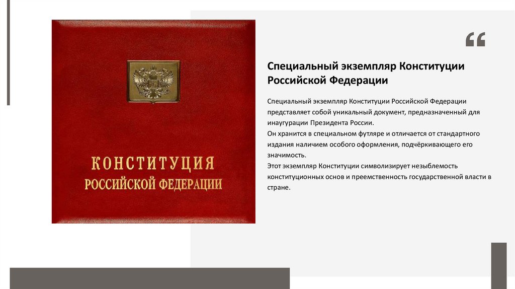 Специальный экземпляр Конституции Российской Федерации