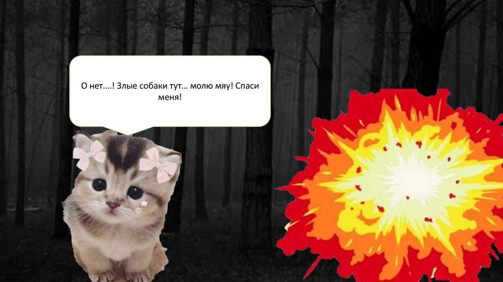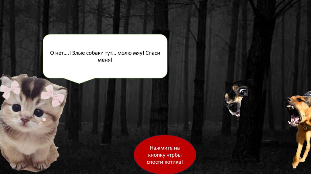 О нет….! Злые собаки тут… молю мяу! Спаси