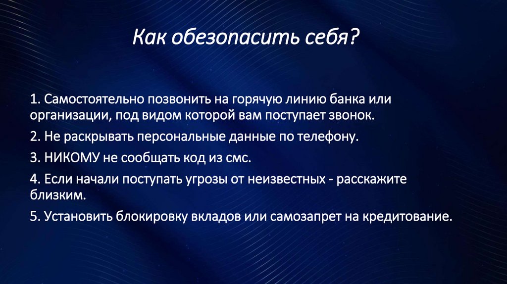 Как обезопасить себя?1. Самостоятельно позвонить на горячую линию банка или