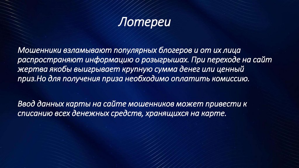 ЛотереиМошенники взламывают популярных блогеров и от их лица