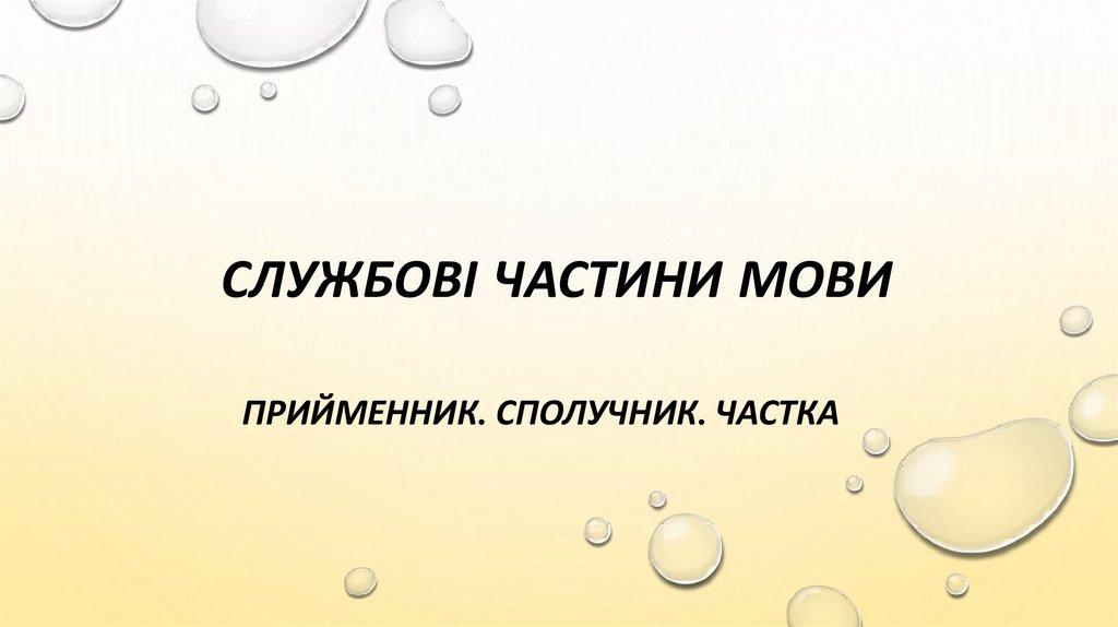 СЛУЖБОВІ ЧАСТИНИ МОВИПРИЙМЕННИК. СПОЛУЧНИК. ЧАСТКА