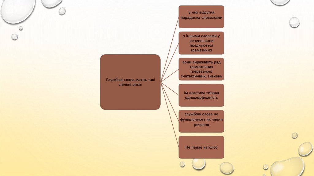 значення злиті воєдино, тому службові слова не поділяються на морфи — вони становлять