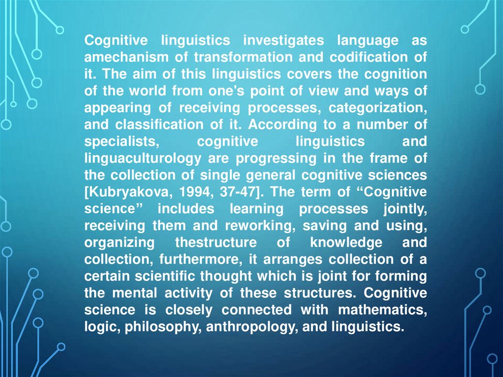 [Kubryakova, 1994, 37-47]. The term of “Cognitive