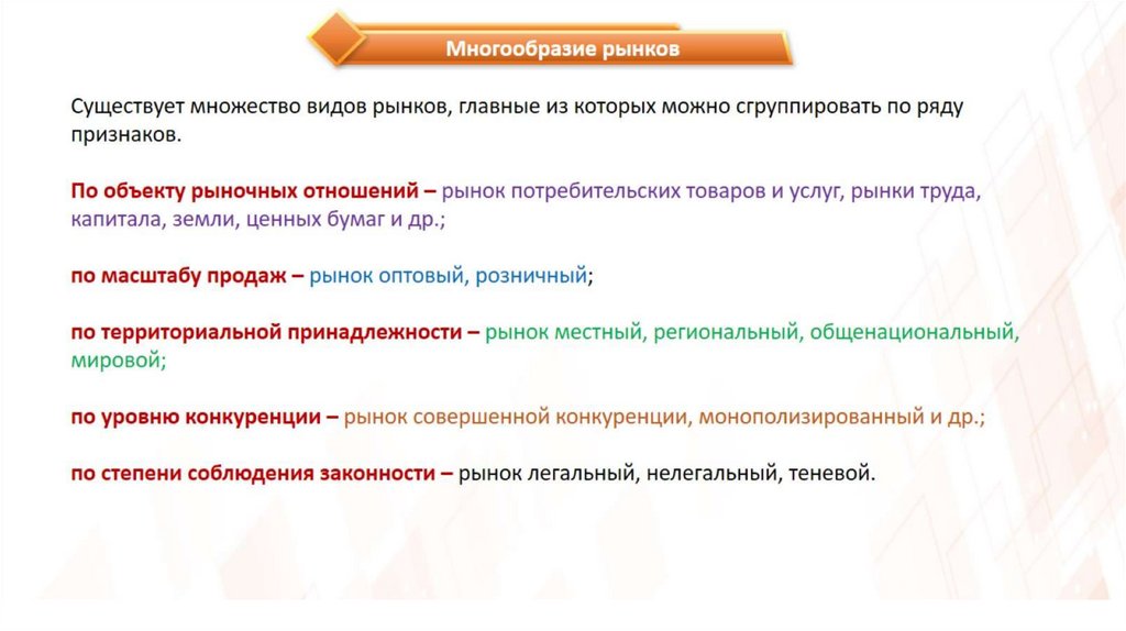 ОГЭ_4.6 Рыночная экономика. Конкуренция. Спрос и предложение. Рыночное равновесие. Невидимая рука рынка. Многообразие рынков
