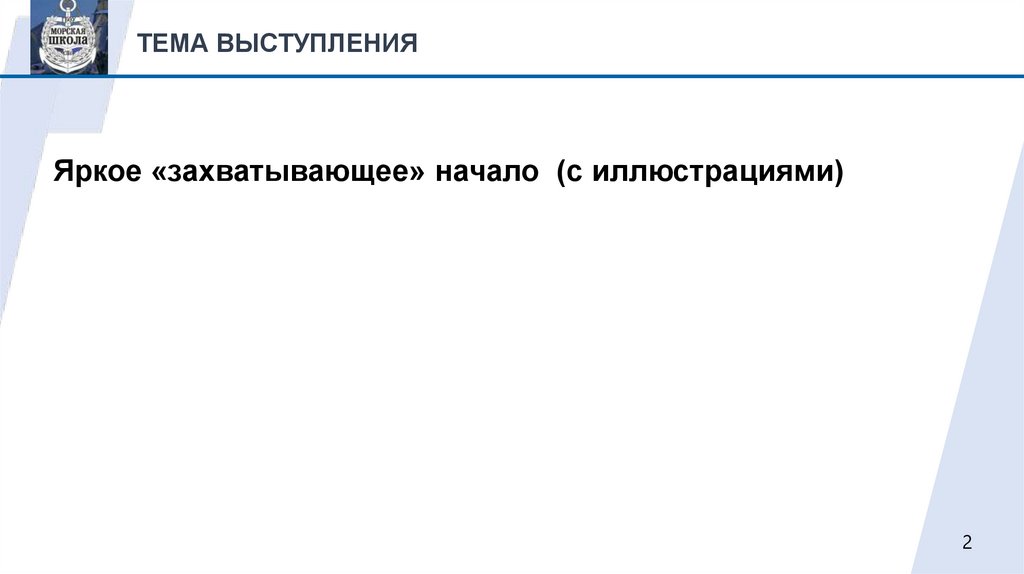 ТЕМА ВЫСТУПЛЕНИЯЯркое «захватывающее» начало (с иллюстрациями)