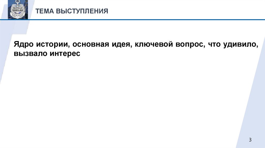 ТЕМА ВЫСТУПЛЕНИЯЯдро истории, основная идея, ключевой вопрос, что удивило,