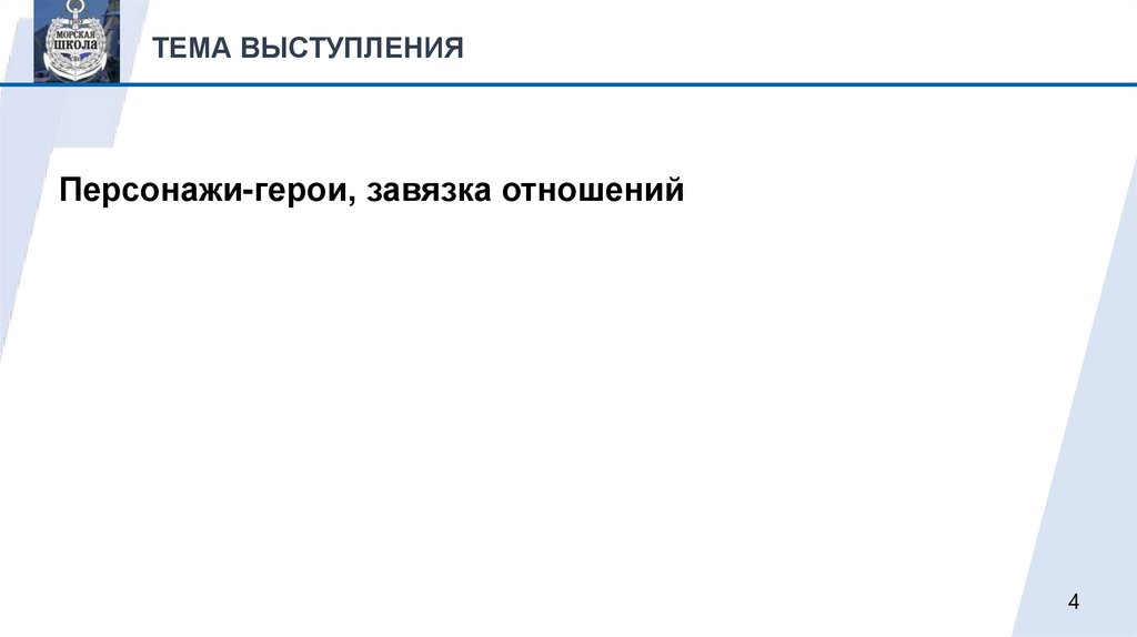 ТЕМА ВЫСТУПЛЕНИЯПерсонажи-герои, завязка отношений