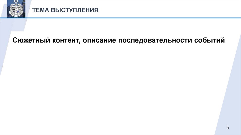 ТЕМА ВЫСТУПЛЕНИЯСюжетный контент, описание последовательности событий