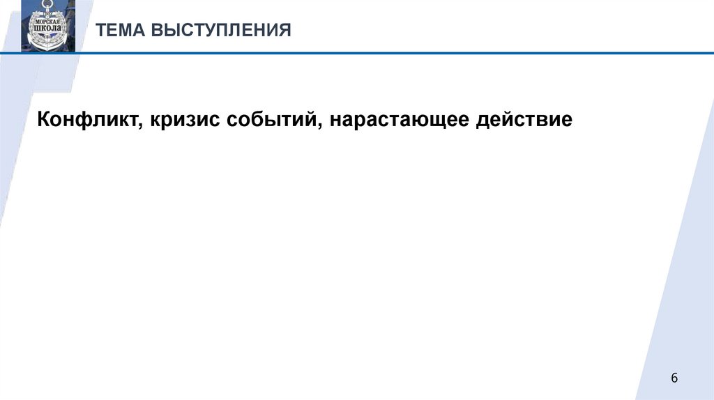 ТЕМА ВЫСТУПЛЕНИЯКонфликт, кризис событий, нарастающее действие