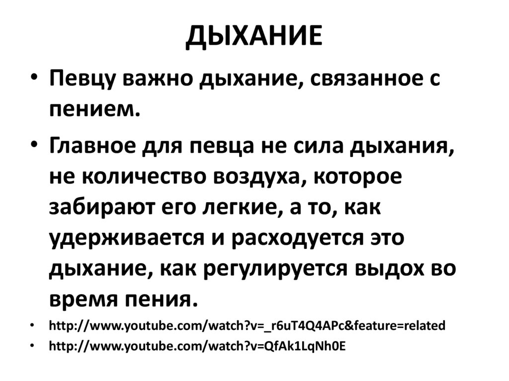 ДЫХАНИЕ• Певцу важно дыхание, связанное с