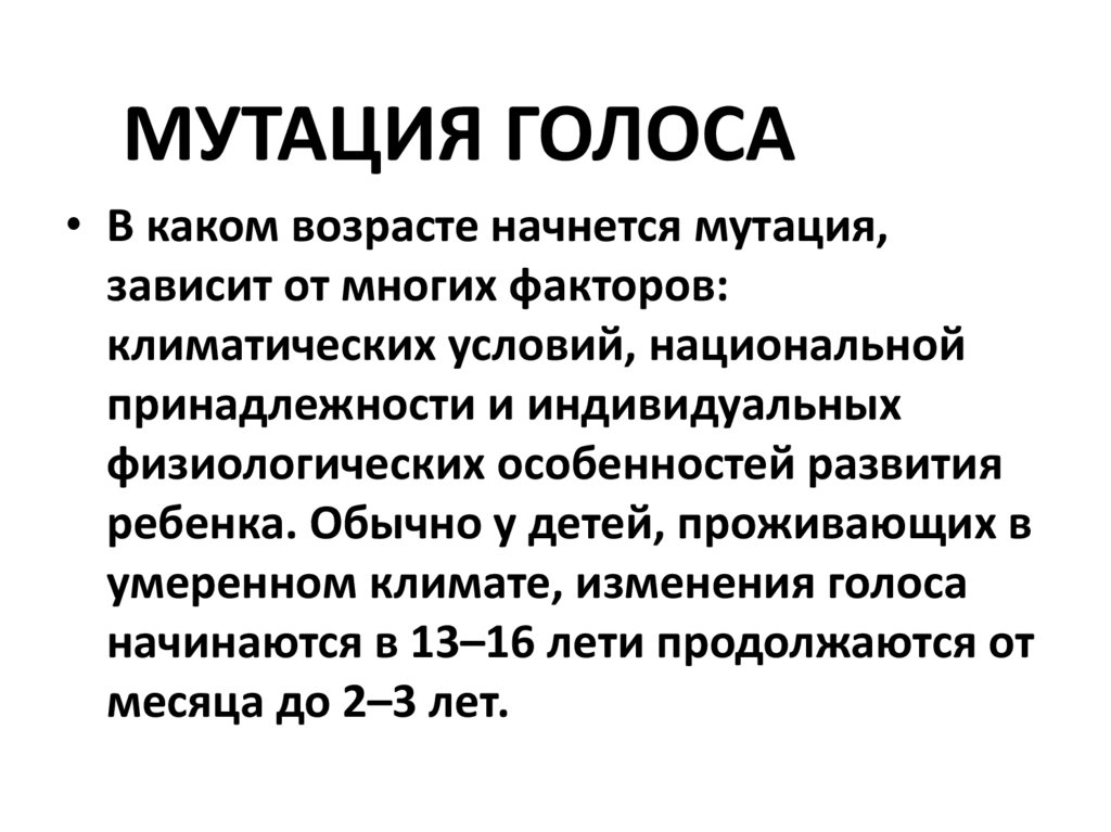 МУТАЦИЯ ГОЛОСА• В каком возрасте начнется мутация,
