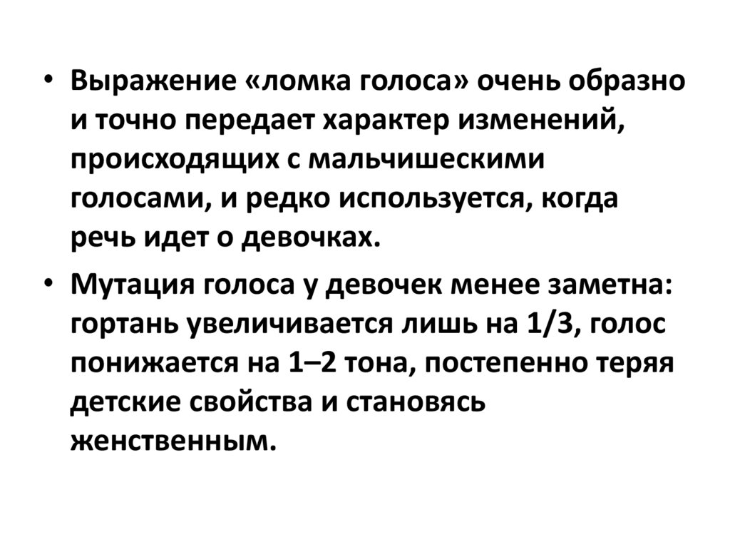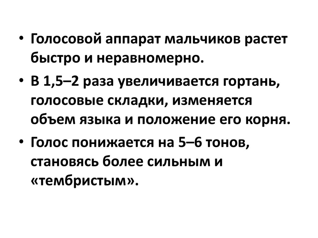 • Голосовой аппарат мальчиков растетбыстро и неравномерно.
