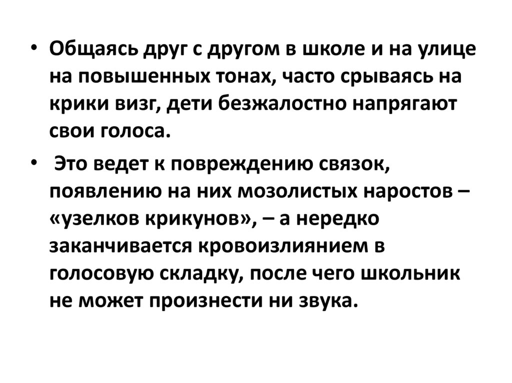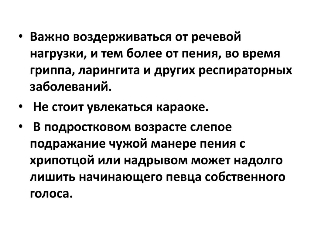 • Важно воздерживаться от речевойнагрузки, и тем более от пения, во время