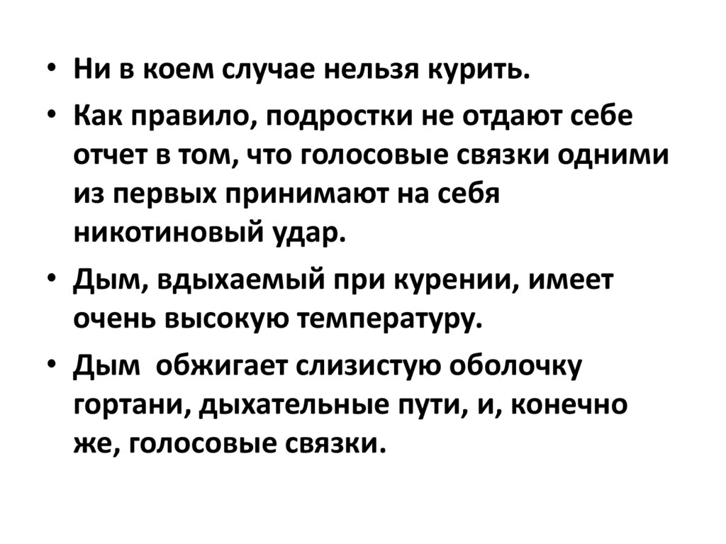 • Ни в коем случае нельзя курить.• Как правило, подростки не отдают себе