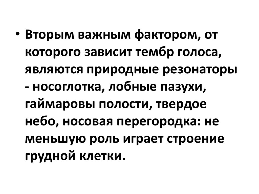 • Вторым важным фактором, откоторого зависит тембр голоса,