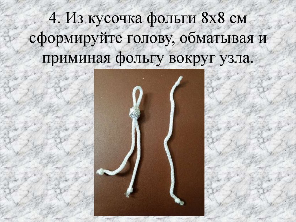 4. Из кусочка фольги 8х8 смсформируйте голову, обматывая и
