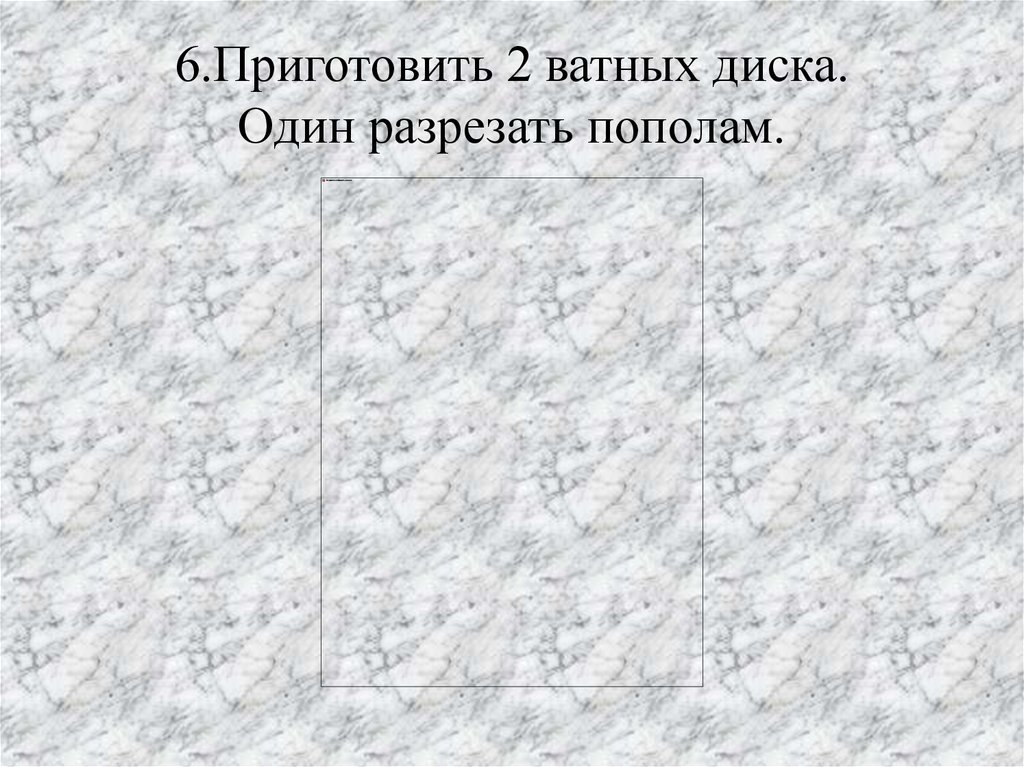 6.Приготовить 2 ватных диска.Один разрезать пополам.