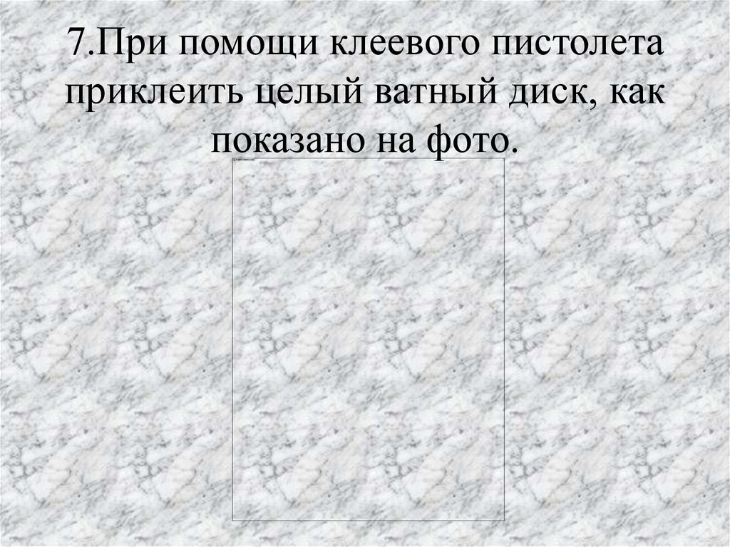 7.При помощи клеевого пистолетаприклеить целый ватный диск, как