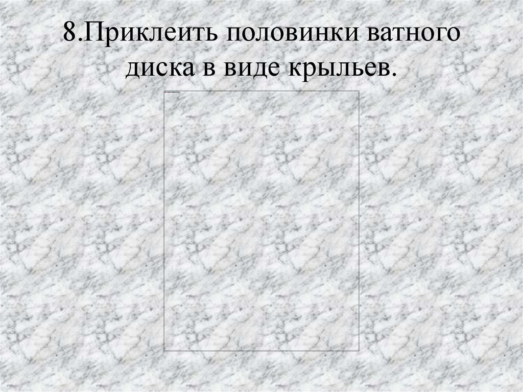 8.Приклеить половинки ватногодиска в виде крыльев.