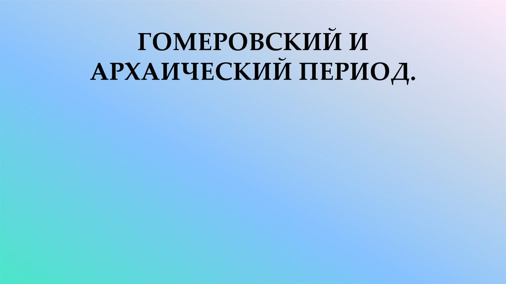 1. ГОМЕРОВСКИЙ И АРХАИЧЕСКИЙ ПЕРИОД.